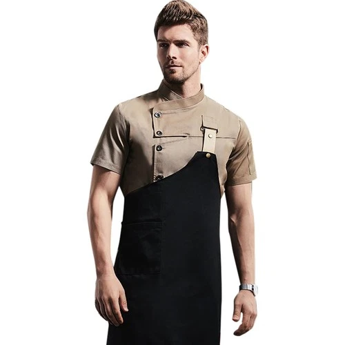 Mens Fashion Chef Coat Breathable Hidden Vent Uniform Jacket Set Apron