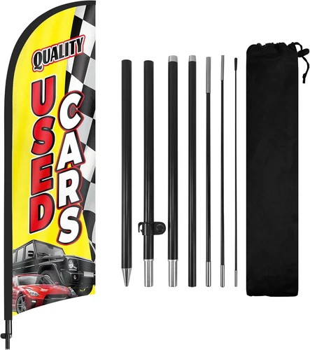 8FT Quality Used Cars Feather Flag Banner, Advertising Swooper Flag with Pole &