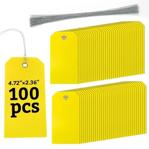 100pcs Yellow Plastic Hang Shipping Tags with Wire Waterproof Blank Label Tags
