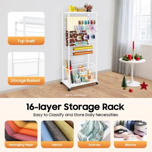 16 Tier White Double Sided Ribbon Organizer Large Capacity Ribbon Storage Holder