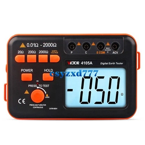 VICTOR 4105A New Type Digital Earth Ground Resistance Tester Manual Range ✦KD
