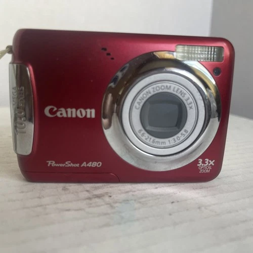 Canon PowerShot A480 10MP 3.3x Zoom Digital Camera & SD Card Red Tested