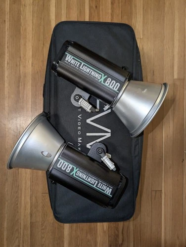 PCB White Lightning X800 Studio Strobes Pair Tested w/ Reflectors Cables Bag