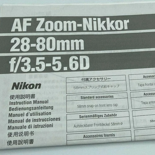 Nikon AF Zoom Nikkor Lens 28 80mm f 3.5 Camera Instruction Manual Guide Vintage