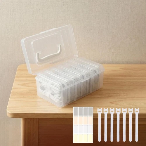 7 Case Portable Cable Storage Box with Handle and Label Stickers, transparent