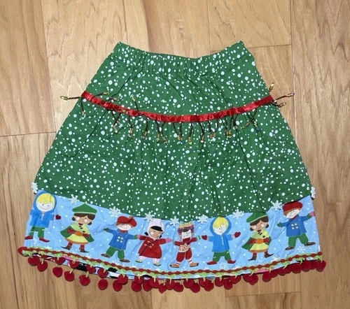 Handmade Alexander Henry Fabric 2021 Christmas Skirt Kids 3T 4T Girls Green