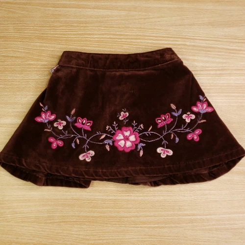 Kru Toddler Brown Velvet Embroidered Skirt 12 Months