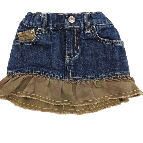 Old Navy Girls Skirt Blue Denim Camo Ruffle Mini Adjustable Waist Size 3T Y2K