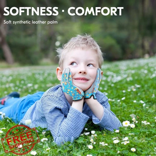 Vgo 1-Pair Kids Gardening Gloves Age 5-6 Toddler Boys Girls Size L Blue Plane