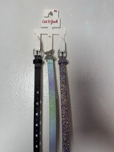 Cat & Jack Girls XL Skinny Belts Set Black Glitter Butterfly Heart Buckle