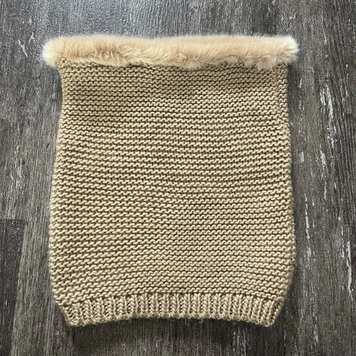 Zara Kids Knit Neck Warmer Faux Fur Trim Tan Acrylic