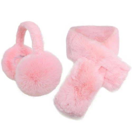 Maticr Faux Fur Ear Muffs and Collar Scarf Set, Warm Earmuffs Large, Pink