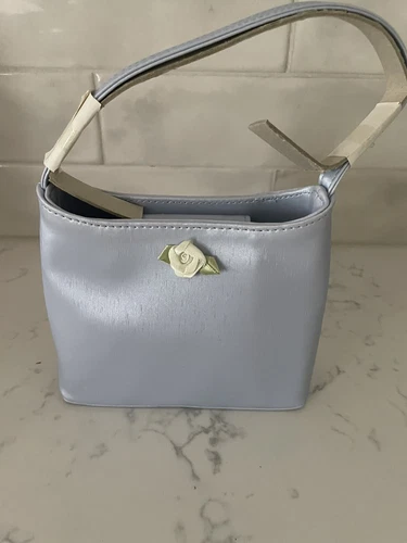 Girls Small light blue vinyl purse with a satin looking finish & snap clasp NEW