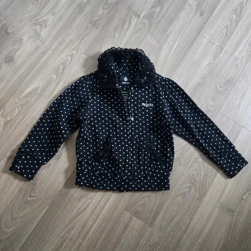 MOCH Girls' Zip-up Jacket 110 Black with White Polka Dots Official