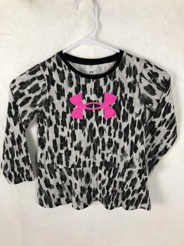 Under Armour Shirt Girls 5 Black White Leopard Print Peplum Long Sleeve Athletic