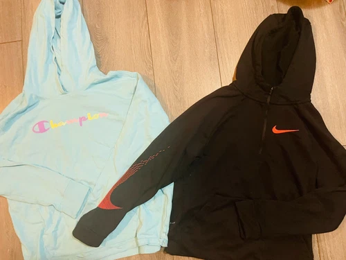 Nike Champion Lot of 2 Girls Scuba Hoodies Sweatshirts Size Medium/Large
