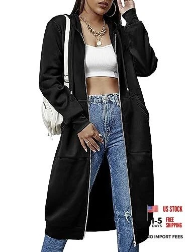 Women Casual Zip up Fleece Hoodies Tunic Sweatshirt Long Hoodie Small 01black