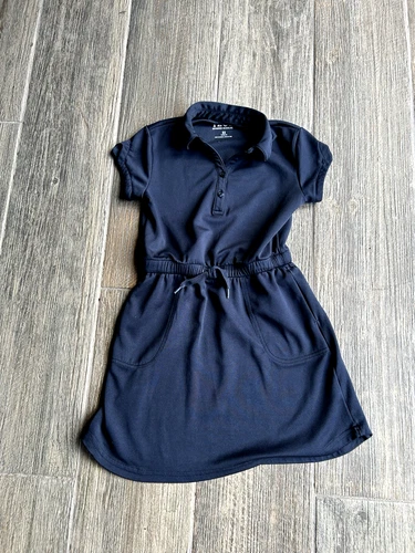 Izod Girl's Sz 6X Polo Shirt Navy Uniform Dress-Adjustable Waist& & Pockets
