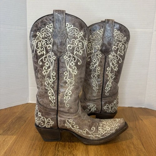 Corral Crater Embroidery Western Boot Bone/Brown Teens Girls Big Kid Size 2