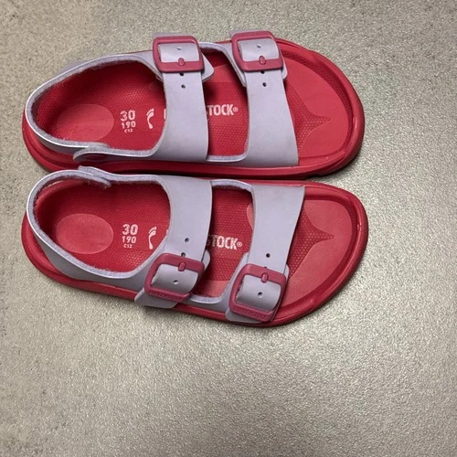 Birkenstock Kids Two-Strap Sandals. Red & Light Pink/Purple size US 12 EUR 30