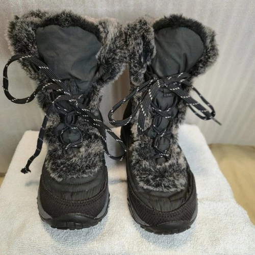 THE NORTH FACE Girls Black Winter Boots Sz 1 Fur Trim Goose Down WORN ONCE!484