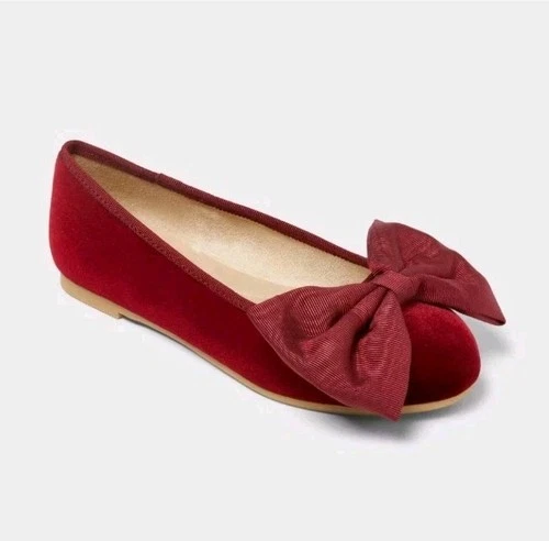 Cat & Jack Girls' Perla Ballet Flat Velvet Mary Jane Shoes Bow Burgungy Size 4