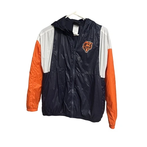 NFL Chicago Bears Windbreaker Jacket Youth Medium Navy Hooded Full Zip