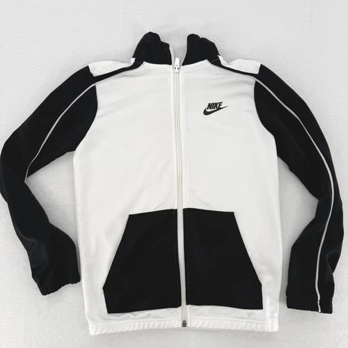 Nike Kids Track Jacket White Black Full Zip Athletic Sportswear Size M