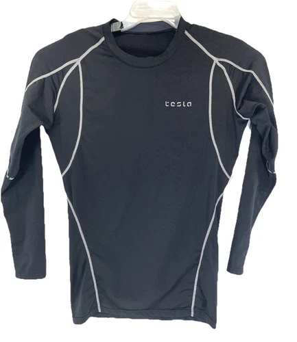 Tesla Black Sz Youth XL Compression Stretch Baselayer Shirt (T13) EUC