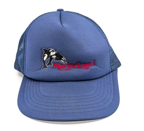 Marineland Niagara Falls Canada Orca Whale Trucker Snapback Mesh Hat Navy Blue