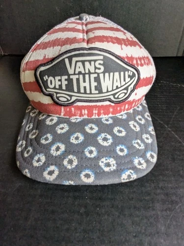 Vintage VANS Off The Wall Patch American Flag Trucker Skater Snapback Hat Cap
