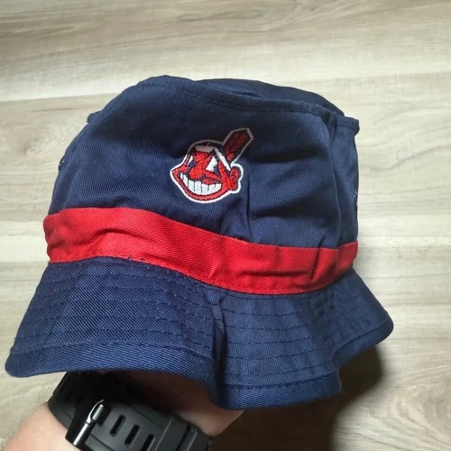 MLB Cleveland Indians Bucket Hat Mens 58cm Navy Blue Vintage Chief Wahoo NWT