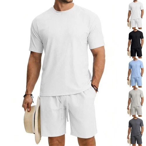 Mens Summer Track Suits 2 Piece Shorts Sets Short Sleeve Sweatsuit Outfits