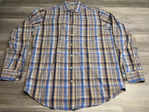 Peter Millar Mens Plaid Button Up Shirt Size Large 100% Cotton Spring Summer