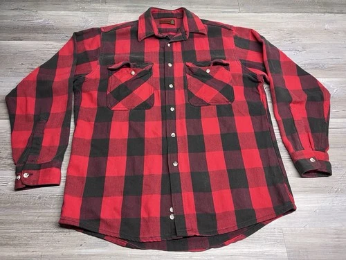 Vintage Fieldmaster Shacket Sz L Red Black Buffalo Plaid Flannel Button Up Shirt