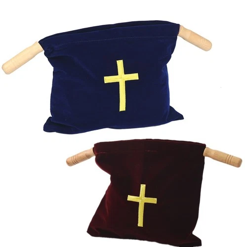 Catholic Church Bag Tithe Offering Bag with Wooden Handles with Cross Embroidery