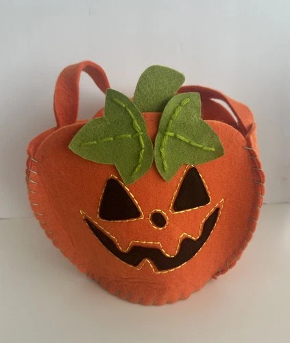 KIDS ORANGE FELT PUMPKIN GLITTER HALLOWEEN TREAT CANDY TOTE BAG JACK-O-LANTERN
