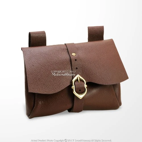 Medieval Messenger Bag Leather Belt Pouch LARP Renaissance Fair Costume Brown