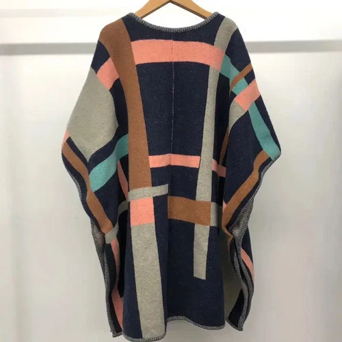 Duel Knit Cape Coat Free Size Wool Long Outerwear