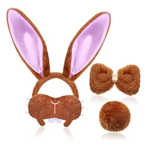 Bunny Cosplay Accessories Set Including Bunny Nose Tail Tie and Ears for Brown