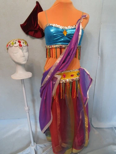 BELLY DANCE COSTUME MEDIUM / LARGE ADULT TALL arabian jasmine woman L M genie #7