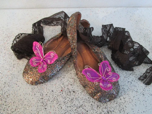 DARK FAIRY SLIPPERS WOMEN SZ 6.5 ballet shoes glitter halloween costume #B2 evil