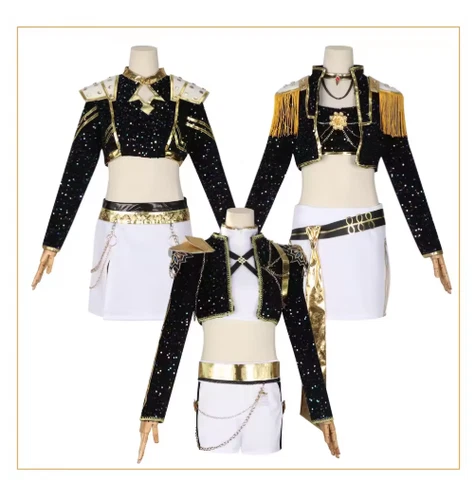 Black Gold Anime Girl Group Cosplay Costume Halloween Stage Outfit