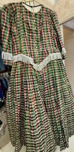 Civil War Camp Reenactment Dress. Size 18-20. Hand Made. Green Plaid. w/hat.