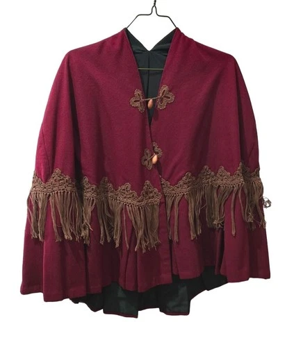 Victorian Burgundy Wool Capelet Fringe Cloak Steampunk Civil War Reenactment