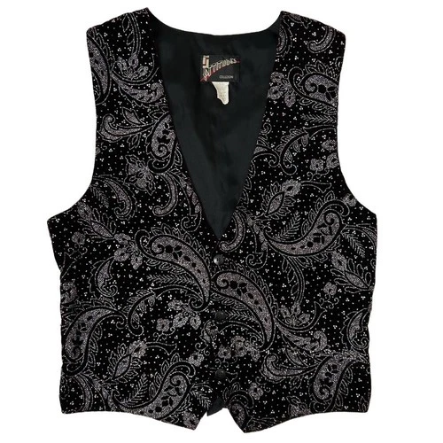 Vintage Attitudes Black Velvet Paisley Glitter Sparkle Vest Unisex Small