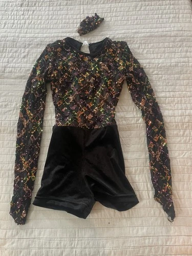 Black Sequined Velor Dance Outfit Size XLC One Size