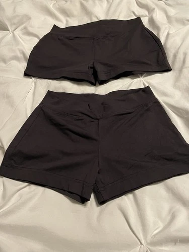 Qty 2 Danskin Child L 10-12 Black Nylon Gymnastics Cheer Dance Shorts Pre-owned
