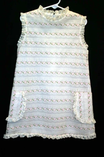 Approx Sz 4 VTG 60s Girls ALYSSA Sun Dress Eyelet Lace A-Line White Pink Floral