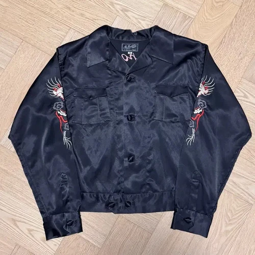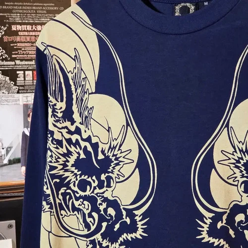 JPN Vintage Dragon Print Embroidered Navy Long Sleeve Official